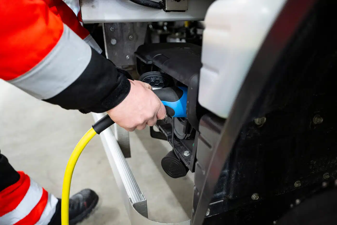 „Für meinen Komfort in der Kabine ist aber gesorgt, ich habe es immer angenehm warm“, lacht Sami Määttä. Dafür und für mehr Reichweite ist das sogenannte optionale Performance Paket zuständig. Es besteht aus Sitzheizung, Lenkradheizung und beheizter Windschutzscheibe. So kann die normale Kabinenheizung je nach Witterung komplett ausgestellt bleiben oder, wie in diesem Fall nur mit sparsamen 18 Grad laufen. „Das ist sehr viel weniger, als wir in unseren Diesel-Lkw eingestellt haben müssen, damit es warm wird“, bestätigt der Finne. „Was mir außerdem sehr gut gefällt, ist, dass das Laden so einfach geht, es direkt in unserer Halle stattfindet und ich währenddessen andere Sachen machen kann. Das ist doch um einiges komfortabler als an der Tankstelle draußen in der Kälte rumzustehen.“