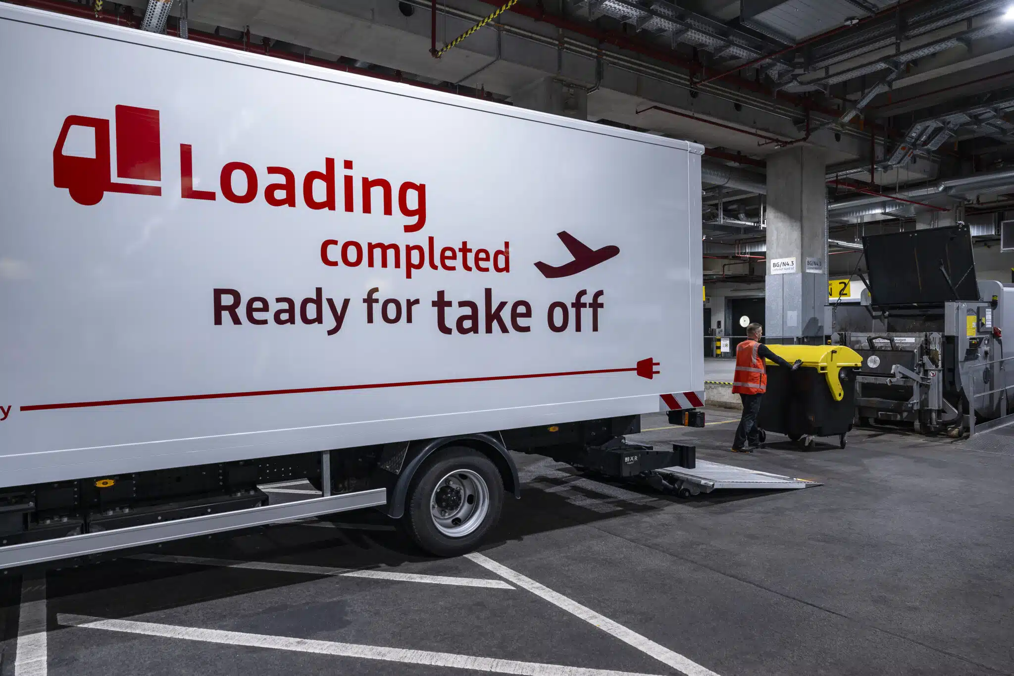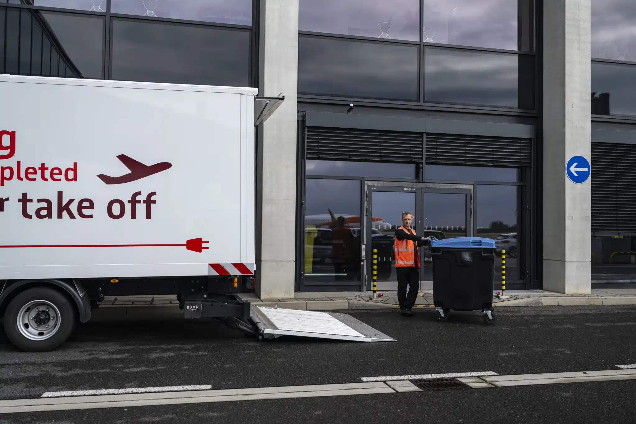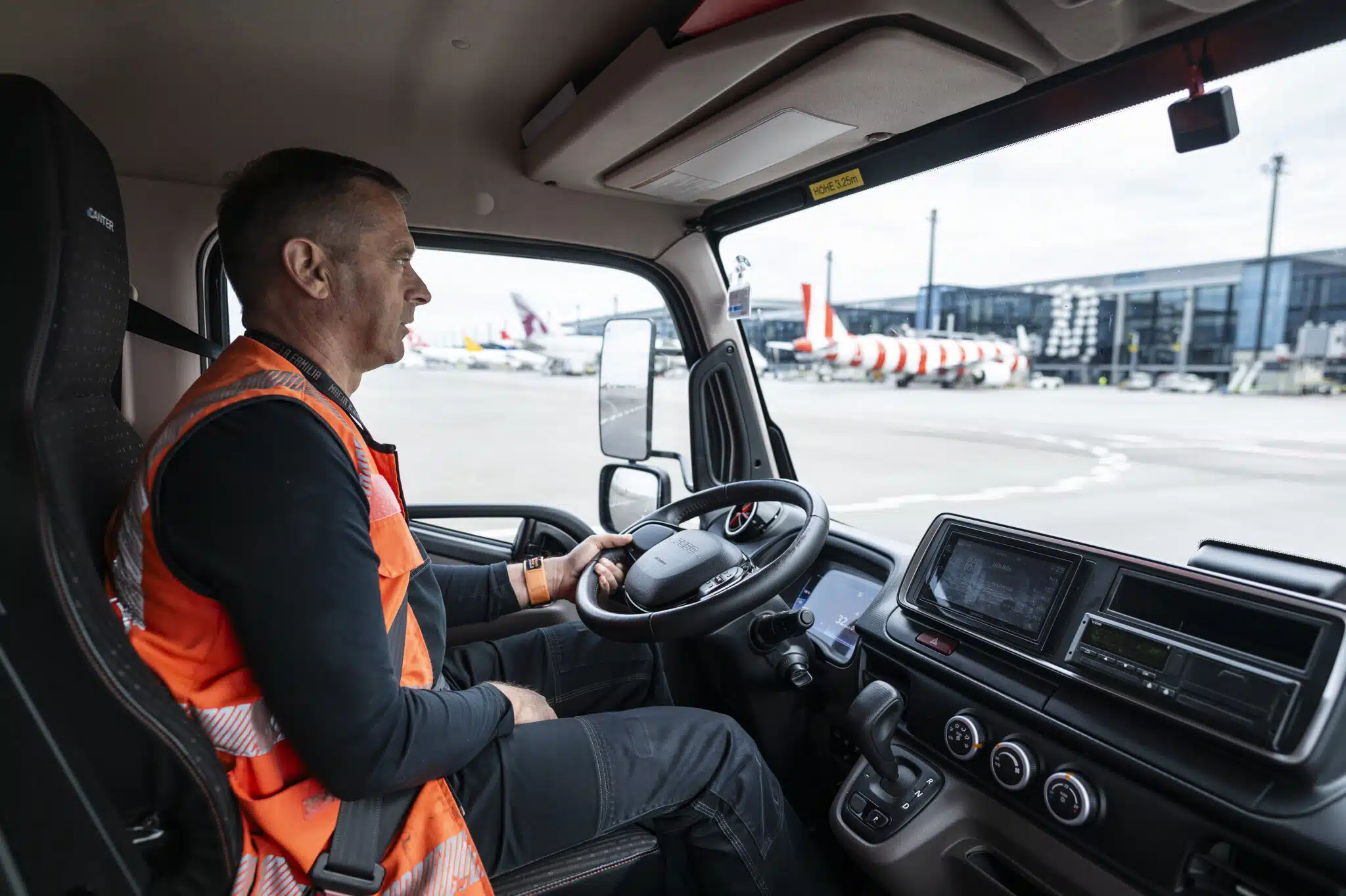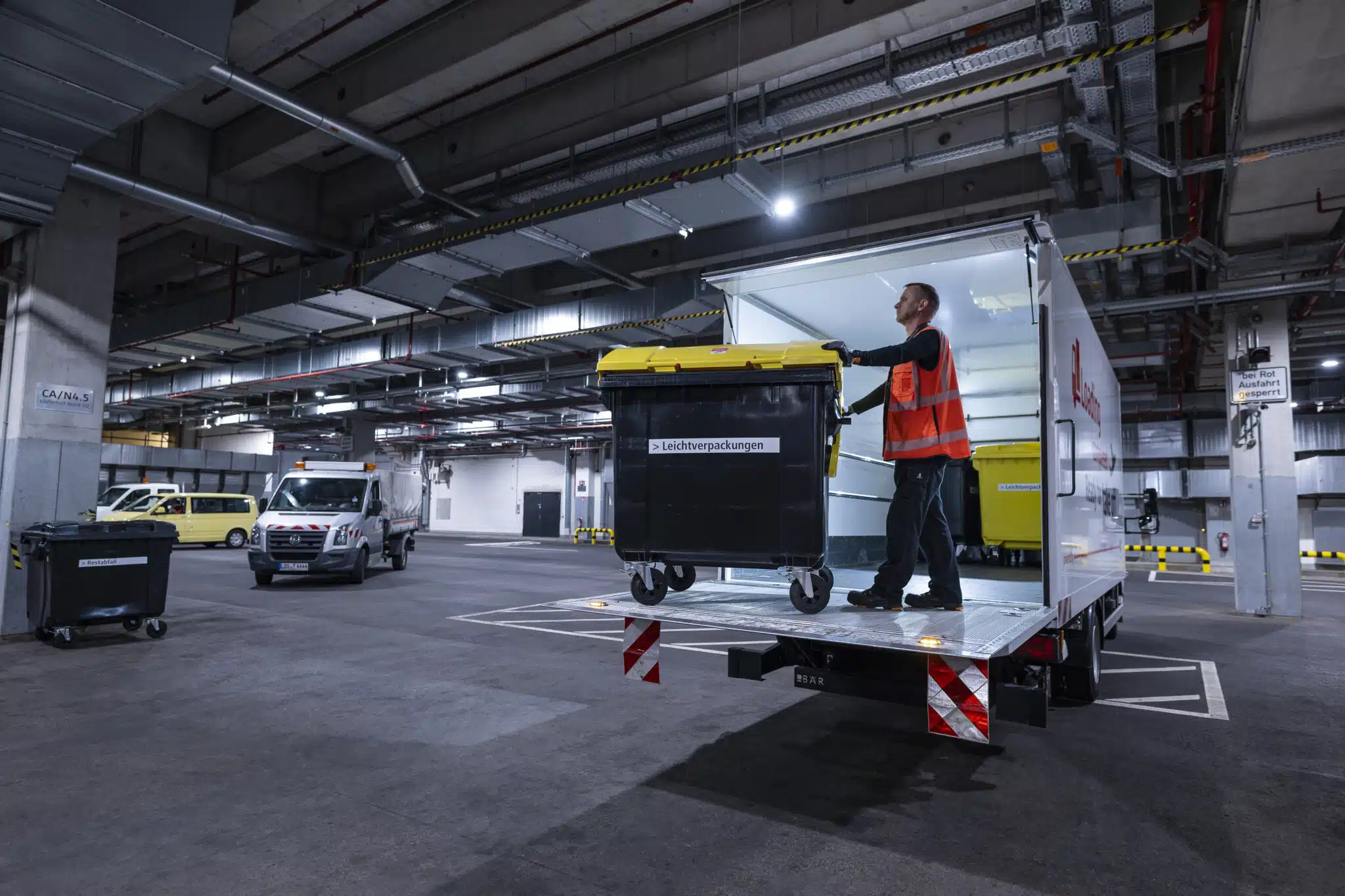 Un coup d’œil sur les bilans montre que le secteur de la gestion des déchets a traité au total près de 3 300 tonnes de déchets au cours de ladite période, répartis en 39 types appelés fractions. Compte tenu de ces chiffres, une logistique interne fluide, flexible, rapide, efficace et efficiente est indispensable. Le fait qu’elle fonctionne exclusivement en mode électrique depuis mai 2024 est encore tout à fait dans le sens de la stratégie de durabilité de l’aéroport. « Nous sommes déjà habitués à l’électromobilité grâce au covoiturage pour les collaborateurs, alors j’ai pensé, dans le cadre d’un nouvel achat de personnes, que cela devait aussi être possible avec un camion électrique », se souvient Artur Heldt.
